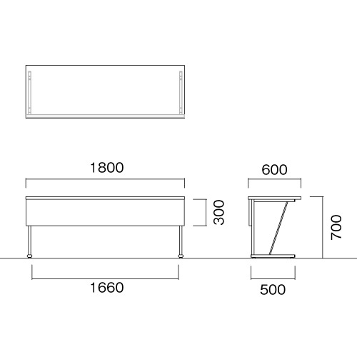 外寸:幅1800×奥行600×高さ700mm 脚間内寸:1660mm |
