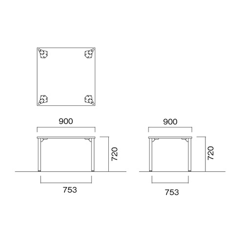 外寸:幅900×奥行900×高さ720mm 脚間内寸:幅753mm |
