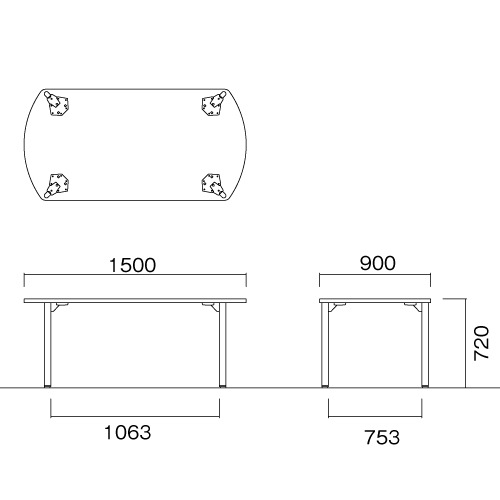 外寸:幅1500×奥行900×高さ720mm 脚間内寸:幅1063mm |