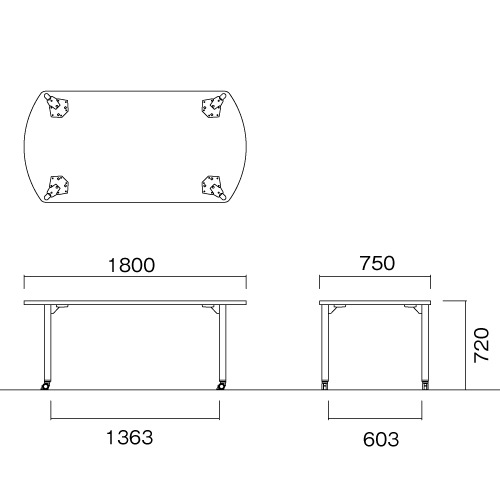| 商品名 | ミーティングテーブル ボート型 キャスタータイプ 幅1800×奥行750mm |