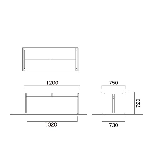 外寸:幅1200×奥行750×高さ720mm 脚間内寸:幅1020mm |