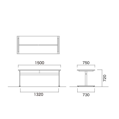外寸:幅1500×奥行750×高さ720mm 脚間内寸:幅1320mm |