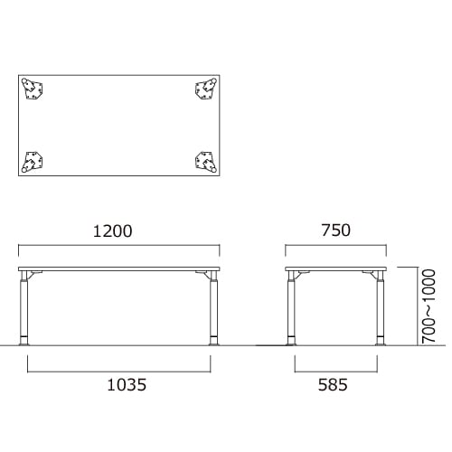外寸:幅1200×奥行750×高さ700~1000mm 脚間内寸:幅1035mm |