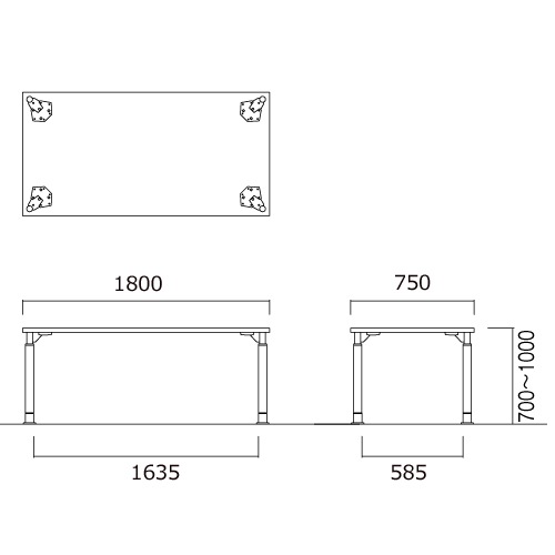 外寸:幅1800×奥行750×高さ700~1000mm 脚間内寸:幅1635mm |