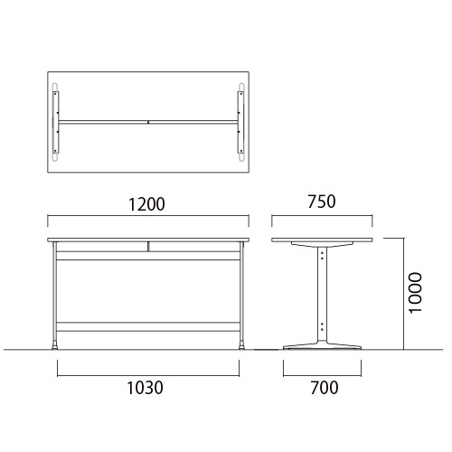 外寸:幅1200×奥行750×高さ1000mm 脚間内寸:幅1030mm |