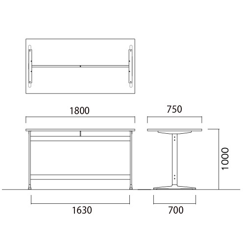 外寸:幅1800×奥行750×高さ1000mm 脚間内寸:幅1630mm |