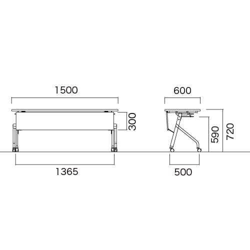 | 商品名 | フォールディングテーブル 幕板付き 高さ720mmタイプ 幅1500×奥行600mm |