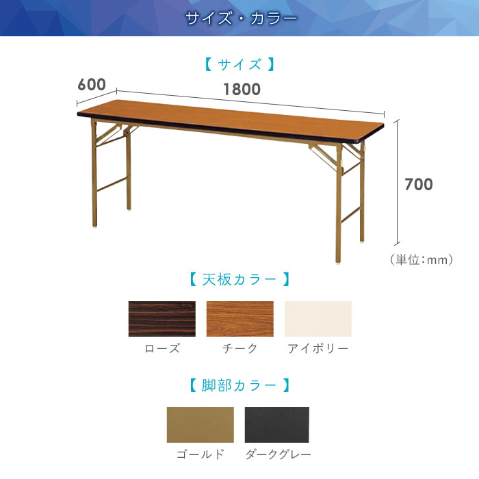 - 折りたたみテーブル 会議用テーブル 幅1800×奥行600×高さ700mm ニシキ KT-1860SN