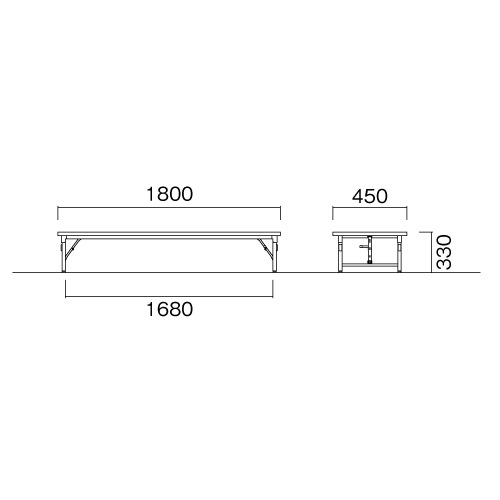| サイズ | 外寸:幅1800×奥行450×高さ330mm 重量:9.8kg 脚間内寸:幅1680mm |
