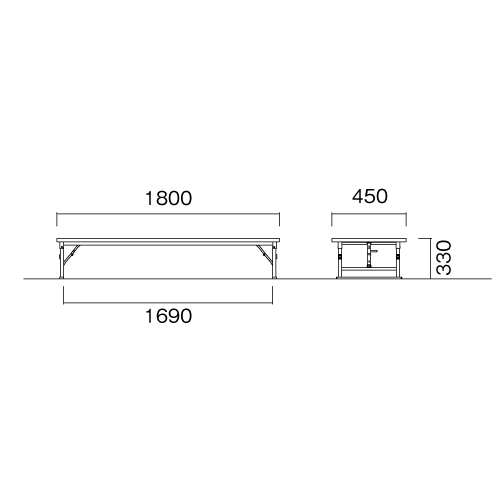 | サイズ | 外寸:幅1800×奥行450×高さ330mm 重量:12.4kg 脚間内寸:幅1690mm |