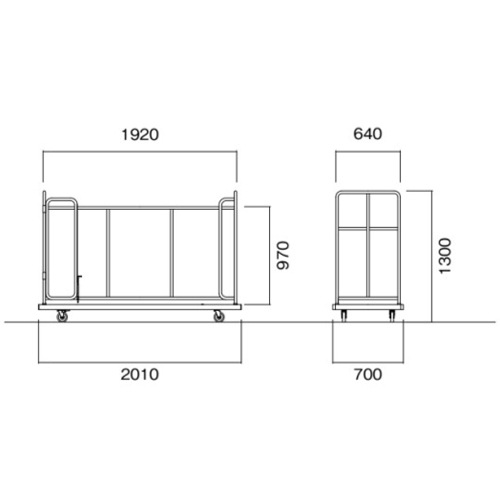| サイズ | 本体:幅2010×奥行700×高さ1300mm 積載可能台数:幅1800×奥行450~600mm 折り畳みテーブル10台 |