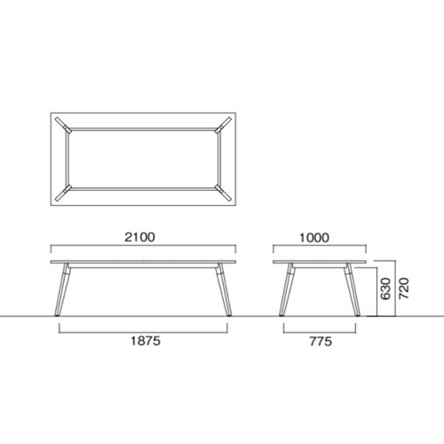 外寸:幅2100×奥行1000×高さ720mm 脚間内寸:幅1875mm |