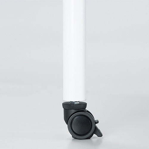 天板:表面材/メラミン化粧板 エッジ/ABS樹脂エッジ巻 30mm厚 脚部:スチールパイプ(直径38.1mm) 焼付塗装 アジャスタータイプ:アジャスター付き キャスタータイプ:直径50mm双輪ナイロンキャスターアジャスト機能4ヶ所(リフトロックストッパー4個) |