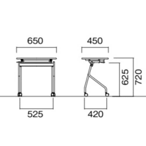 外寸:幅650×奥行450×高さ720mm 脚間内寸:幅525mm |