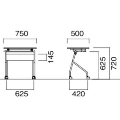 幅750×奥行500×高さ720mm 脚間内寸:幅625mm |