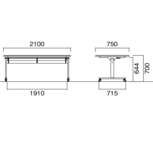 外寸:幅2100×奥行750×高さ700mm 脚間内寸:幅1910mm |
