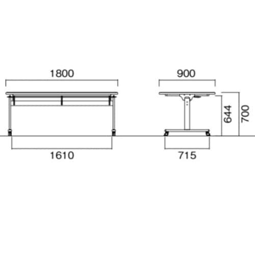 外寸:幅1800×奥行900×高さ700mm 脚間内寸:幅1610mm |