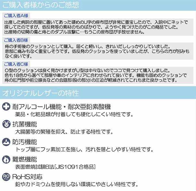 | 産後・手術後の痛み対策に! 医療施設で活躍するU字型のクッションです。 産婦人科や肛門科の待合室・診察室等に最適です。 産後・手術後の痛みを和らげるために個人で購入される方もいらっしゃいます。 日本の医療機器メーカーが国産工場で作成する日本製商品です。 受注生産のため、発送までに1週間前後お時間を頂きます。 |