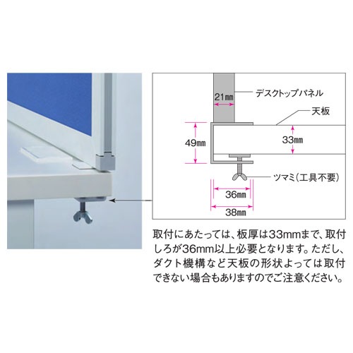 | 便利なクランプ固定タイプ! 薄くて軽い白枠のデスクトップパネルです。 天板厚33mmまでのデスクに使用ができます。 工具不要で簡単に設置できます。 |