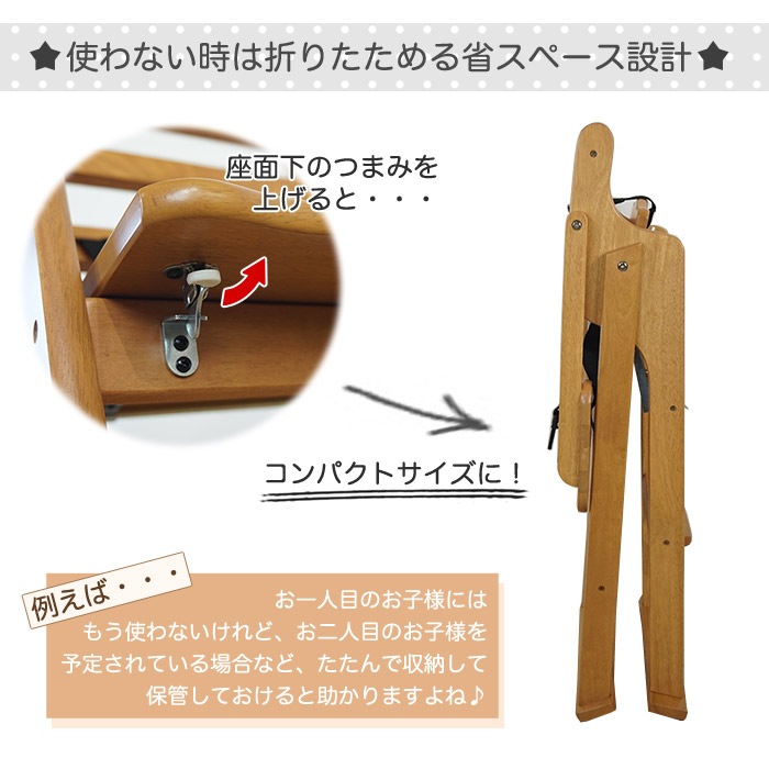 - ベビーチェア ハイチェア 折りたたみ 木製 キッズチェア ベビー キッズ チェア 椅子 赤ちゃん イス 安全ベルト ナチュラル ダークブラウン 17332 17633 BHC-500