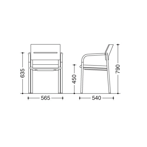幅565×奥行540×高さ790(座面高450)mm 肘高:635mm |