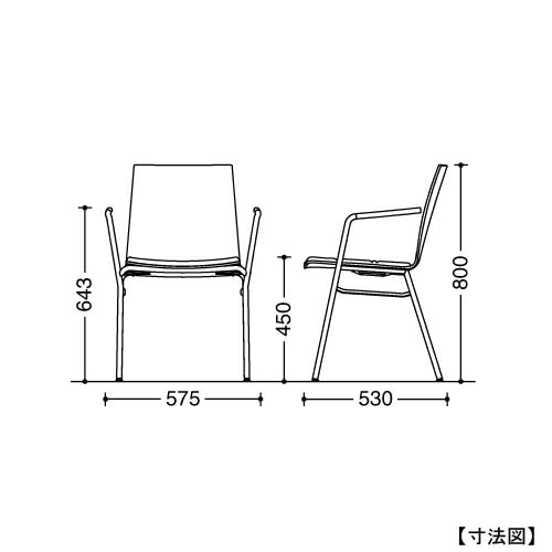 幅575×奥行530×高さ800(座面高450)mm 肘高:643mm 質量:6.0kg |
