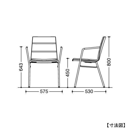 幅575×奥行530×高さ800(座面高450)mm 肘高:643mm 質量:6.5kg |