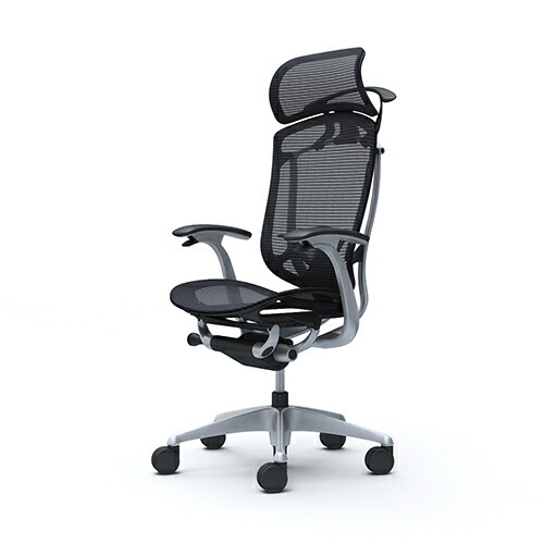 | 商品名 | コンテッサセコンダ 大型ヘッドレスト付き シルバーフレーム/ブラックボディ 座/メッシュ 固定肘 ランバーサポート ハンガー付き |