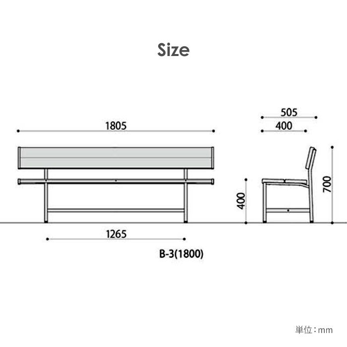 | 商品名 | カラーベンチ 背付き 幅1805mm