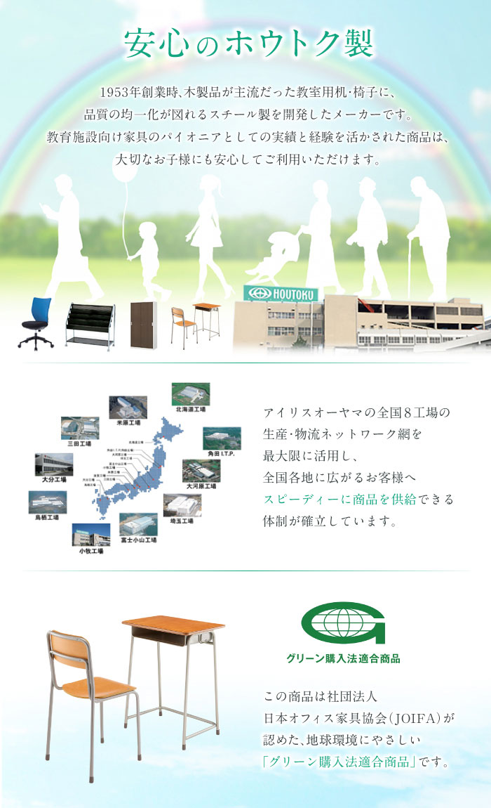 ●グリーン購入法適合商品 社団法人日本オフィス家具協会(JOIFA)が認めた、地球環境に非常に優しい商品です。 |