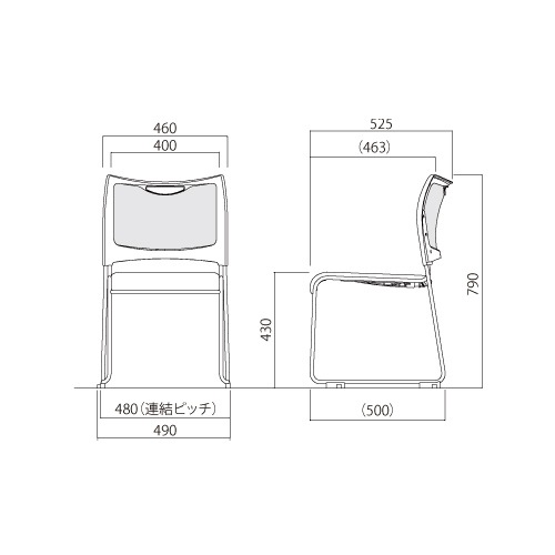 背:ポリプロピレン 座:ポリプロピレン芯材 上張り:(V)ビニールレザー クッション:ウレタンフォーム 脚:直径12.7mmスチールパイプ、シルバーメタリック粉体塗装 ●連結脚プラパート付き ●スタッキング可能 |