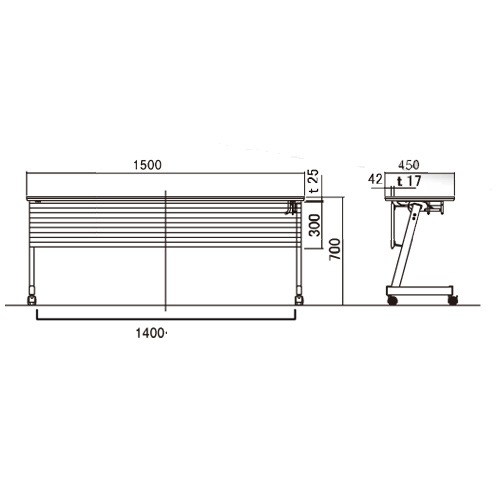 | 商品名 | フォールディングテーブル 幅1500×奥行450mm ABS幕板付き |