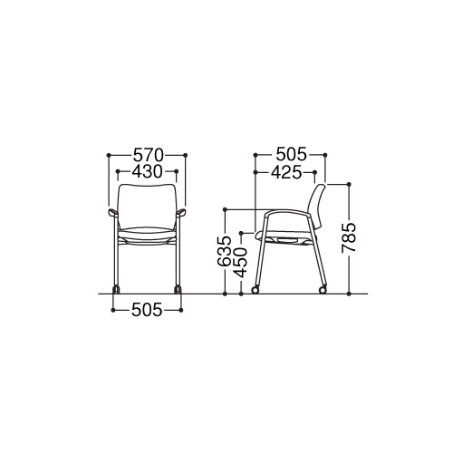 幅570×奥行505×高さ785(座面高450)mm 質量/6.2kg スタッキング/5台 |