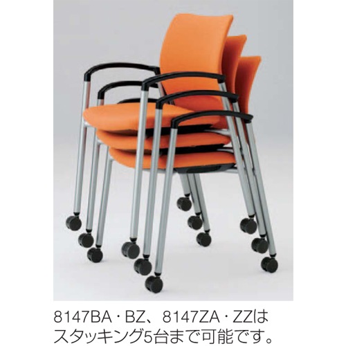 | 商品名 | 8147 スタッキングチェア 肘付き 布張り 4本脚キャスター |
