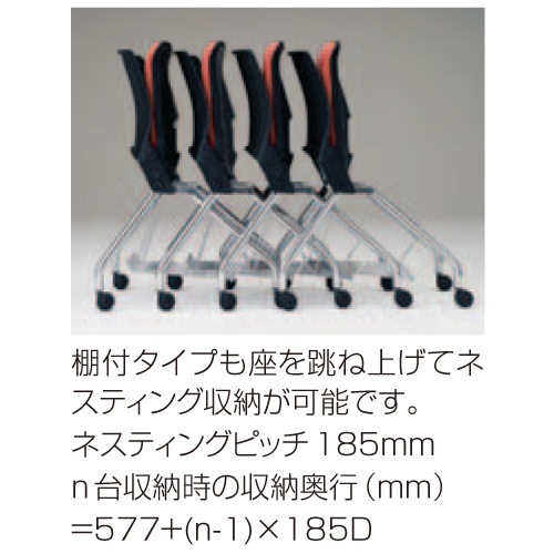 ※こちらは4本脚ネスティングタイプ(棚付)・ブラックシェル・肘付・ビニールレザー張りの商品ページです。 |