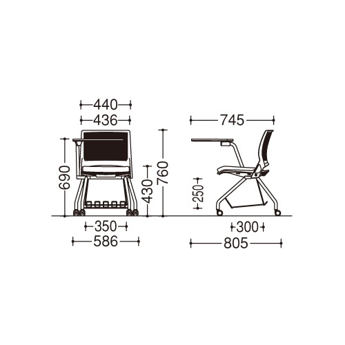 - スタッキングチェア ミーティングチェア メモ台付き キャスター オカムラ 9317UH-PB