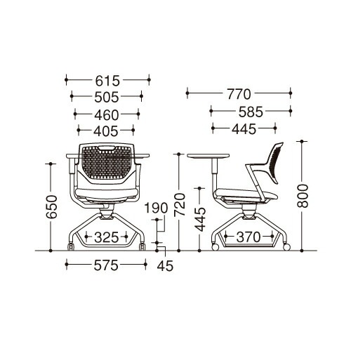 幅615×奥行770×高さ800(座面高445)mm 質量16.2kg |