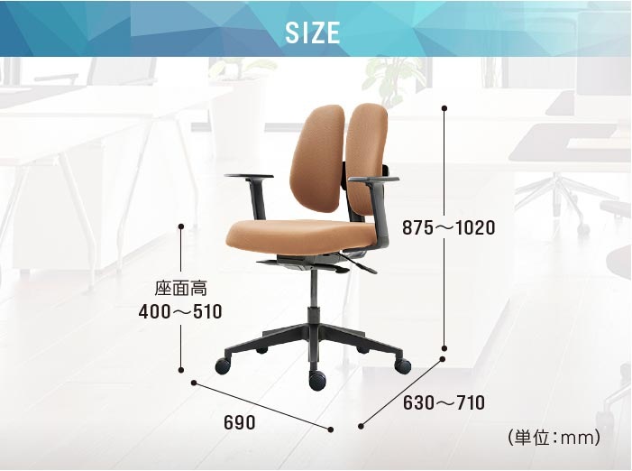 幅690×奥行630~710×高さ875~1020(座面高400~510)mm 重量:17.2kg |