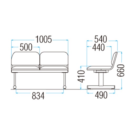 | 商品名 | ロビーチェア 2人用 背付き ビニールレザー張り