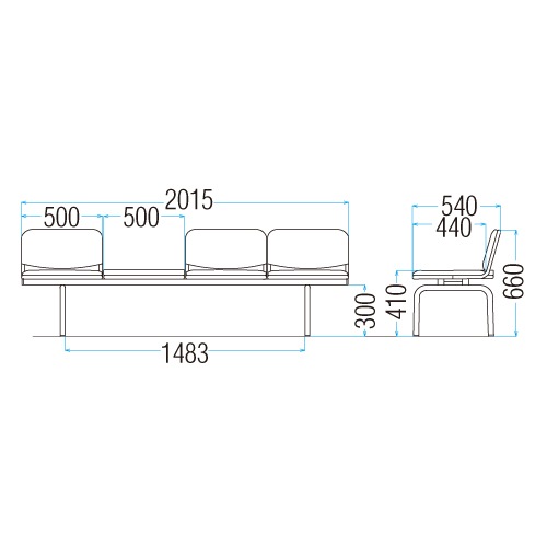 幅2015×奥行540×高さ660(座面高410)mm 重量:31.6kg |