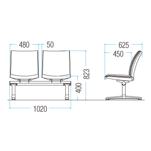 | 商品名 | ロビーチェア 2人用 背付 肘なしタイプ 布張り