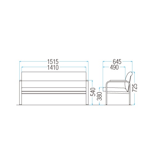 - 応接ソファ 2人用 幅1515×奥行645×高さ725(座面高380)mm FO-45L