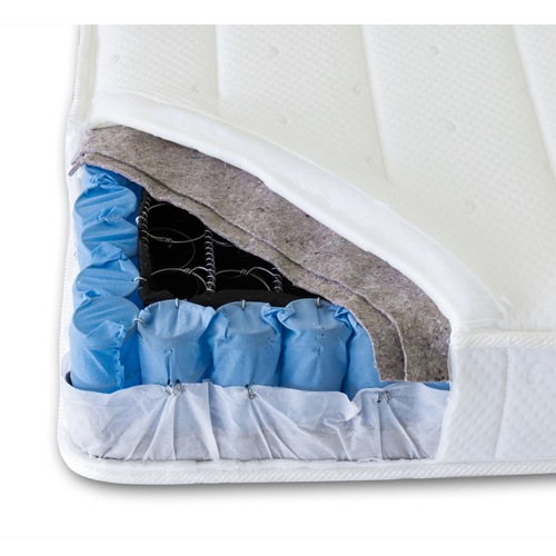 2.1mmボンネルコイルスプリング(コイル数240個)、2.2mmポケットコイルスプリング(コイル数88個) ウレタン、フェルト、ポリエステル、両面多針キルティング加工 |