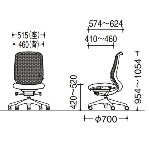 幅515×奥行700×高さ954~1054(座面高420~520)mm |