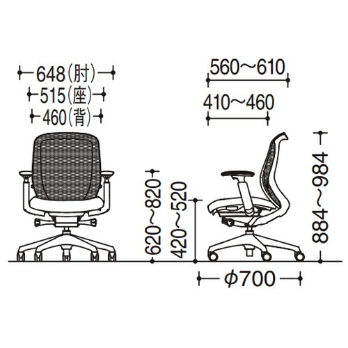 幅648×奥行700×高さ884~984(座面高420~520)mm |
