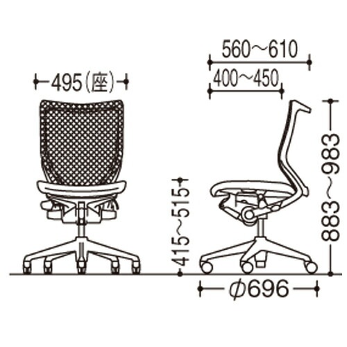 幅495×奥行696×高さ883~983(座面高415~515)mm |