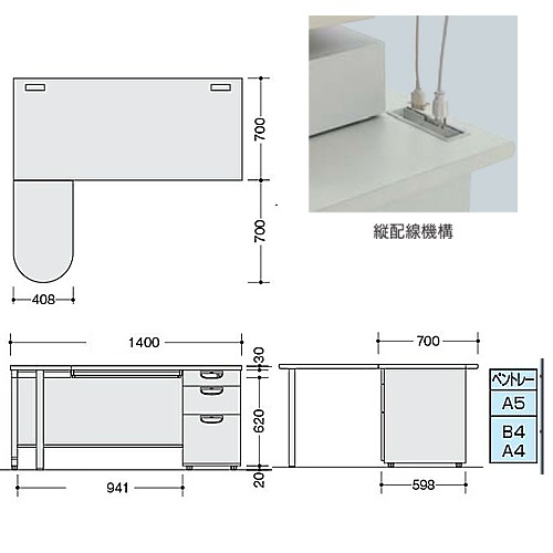 | 商品名 | L型デスク 幅1400mm |