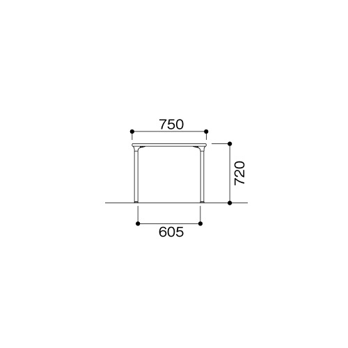 外寸:幅750×奥行750×高さ720mm 脚間内寸:幅605mm |