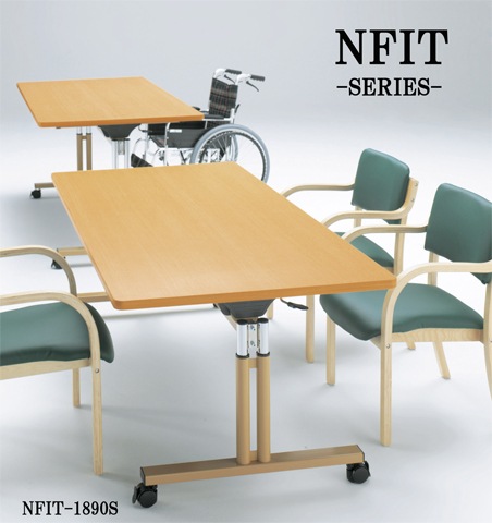 - ダイニングテーブル 幅1800×奥行750mm 抗菌 昇降式 スタッキングテーブル FIT-1875S