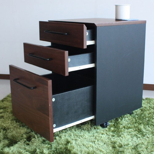 - デスクワゴン 木製 3段 キャスター付 脇机 LEGATO-W